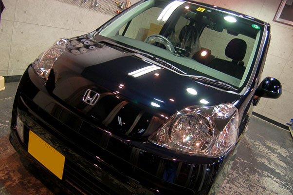さて、こちらのお車ですが、ほぼ新車でのご入庫でしたが、黒ということもあり、若干の洗車傷、そして誰かが(誰だ?)磨いた跡がありました。そして、ホンダの塗装の特徴ともいえる、ちょっとモサッとした感じがありましたが、それ以外は比較的良好な状態でした。